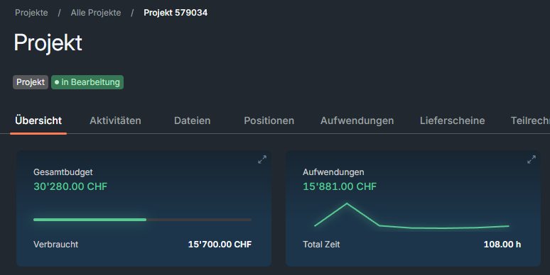 Wichtige Informationen werden durch Glow-up in neue Diagramme verpackt. Für Unternehmen, Verkaufschancen, Serviceaufträge (aka Mandate, Tickets etc.) und Projekte gibt es neue Diagramme, um Aufwendungen, Erträge, Budgets, Nachkalkulation und Rentabilitätsanalyse verständlich darzustellen.
